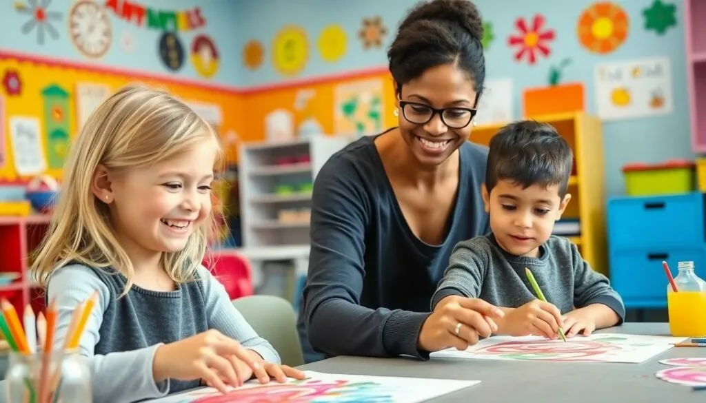 The arts and music program engages children in creative expression through painting, drawing, sculpture, and musical instruments. Students participate in 45-minute daily art sessions exploring various mediums including watercolors, clay, and recycled materials. Weekly music classes incorporate rhythm exercises, song learning, and instrument exploration with xylophones, drums, and tambourines. Professional teaching artists lead monthly workshops focusing on specific techniques like color mixing, puppet making, and basic music composition. The program culminates in quarterly art exhibitions and musical performances where children showcase their creative achievements to families.